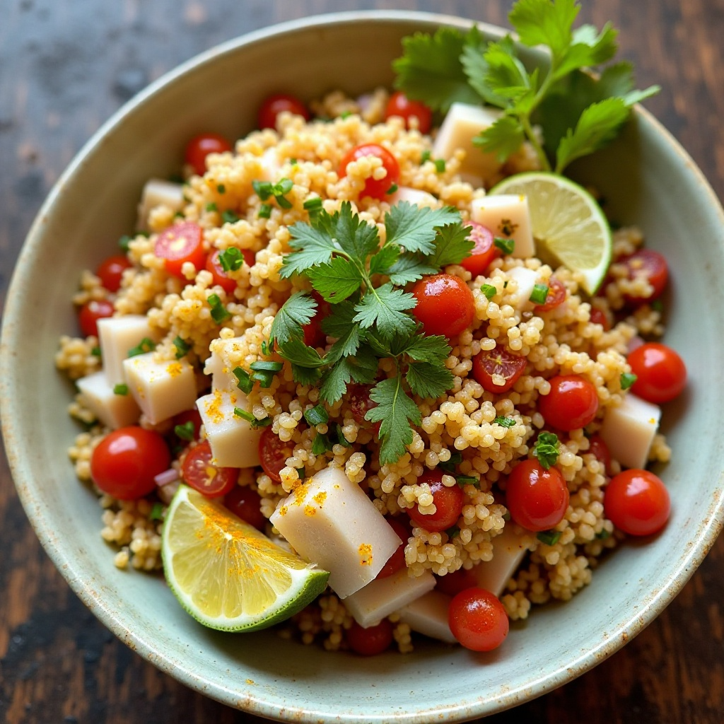 Este ceviche es una opción saludable debido a su bajo contenido de grasa y la inclusión de proteínas vegetales a través de la quinoa. El ají amarillo en polvo contribuye con vitaminas del grupo B, mientras que los tomates y el cilantro ofrecen antioxidantes. Para aquellos con restricciones dietéticas, esta receta es una alternativa más ligera al ceviche tradicional.