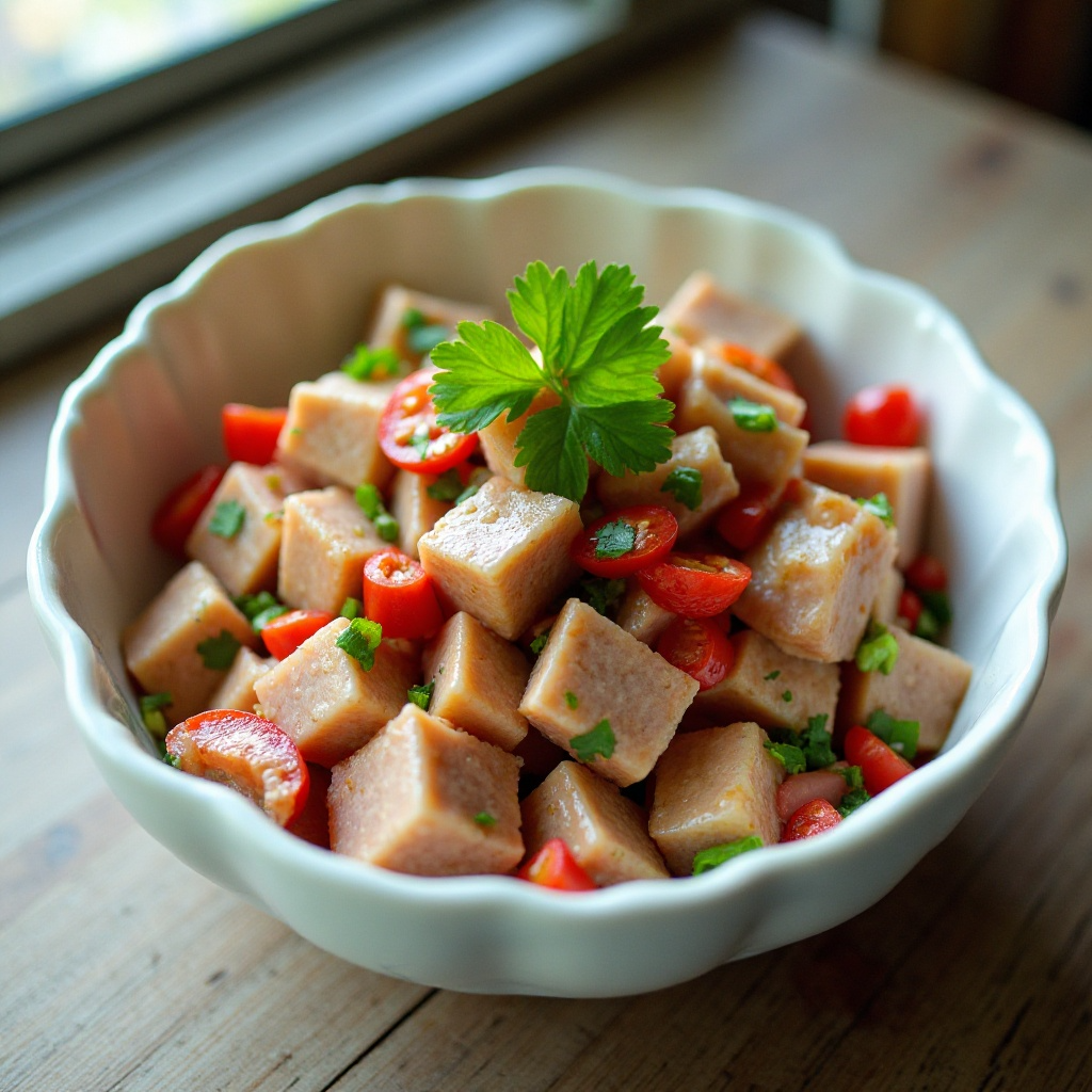 El atún es una fuente de proteínas versátil y el coco, un ingrediente común en muchas culturas del Pacífico, aporta un toque tropical a este ceviche. En la isla de Buada, Nauru, los locales han creado esta adaptación que combina lo mejor de ambos ingredientes, ofreciendo un plato fresco y lleno de sabor.