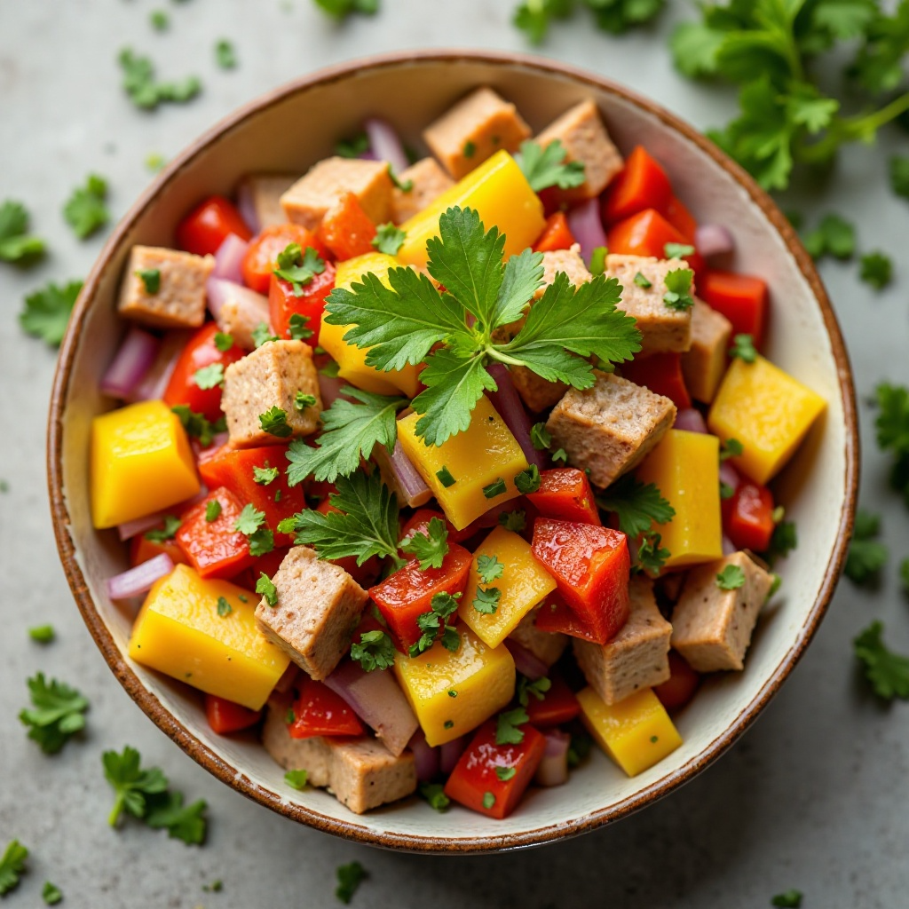 Este ceviche ofrece una excelente fuente de proteínas magras y ácidos grasos omega-3 provenientes del atún. La inclusión de mangos aporta antioxidantes y vitaminas esenciales. Para una versión más ligera, puedes reducir la cantidad de cebolla o optar por una variante sin aceites añadidos. Es importante asegurarse de que el atún esté fresco para prevenir cualquier riesgo asociado con la comida cruda.