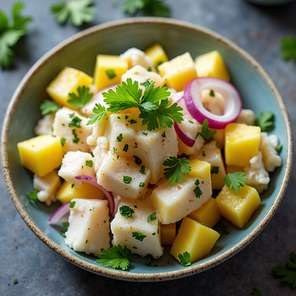 El ceviche es un plato lleno de frescura que se disfruta en muchos países costeros. En Thingvellir, una región histórica y geológicamente interesante de Islandia, podemos dar un toque local con Skýr, un tipo de queso suave y ligeramente ácido. Este ceviche de bacalao con Skýr es ideal para una cena refrescante o un aperitivo durante reuniones familiares o festividades.