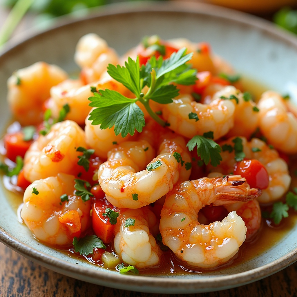 El ceviche es un plato emblemático que ha trascendido fronteras y culturas. Esta versión, inspirada en la costa este de Estados Unidos, utiliza camarones frescos que se tiñen de los sabores vibrantes del ají y cilantro típicos de América Latina. Ideal para una comida ligera o como entrada, este ceviche es perfecto para Ely, disfrutando de un toque de exotismo en su cocina diaria.