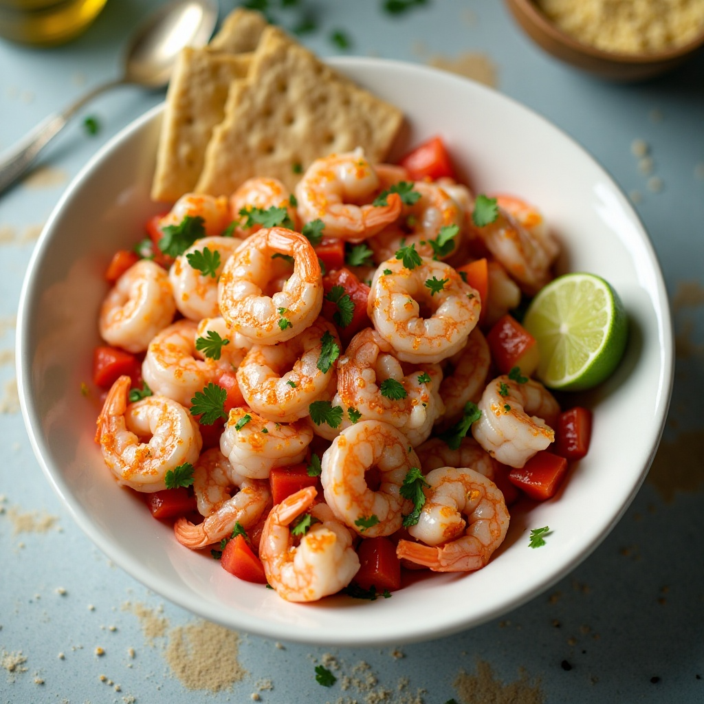 El camarón rosado es conocido por su bajo contenido de colesterol y alto contenido de proteínas, lo que lo convierte en una opción saludable. Los limones y la lima aportan vitaminas esenciales y antioxidantes. Para aquellos con restricciones alimenticias, puedes ajustar el nivel de sal y optar por un aceite de oliva con menor cantidad de calorías. Recuerda siempre asegurarte de que los camarones estén bien cocidos antes de consumirlos para evitar cualquier riesgo de seguridad alimentaria.