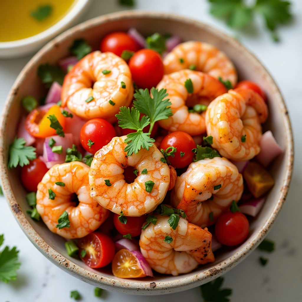 El ceviche de camarones es rico en proteínas de alta calidad y nutrientes esenciales, como el zinc y las vitaminas A y C. Los camarones son bajos en grasas y se consideran una opción saludable para incluir en una dieta equilibrada. Los tomates y las verduras frescas también aportan fibra y antioxidantes, contribuyendo a un plato completo y nutritivo.