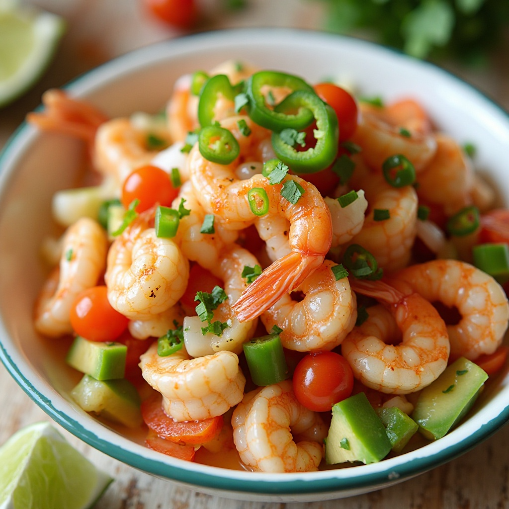 El ceviche de camarones es una fuente rica de proteínas y nutrientes esenciales como el selenio, un antioxidante natural. El aguacate, si lo usas, aporta grasas saludables. Para versiones más ligeras, puedes ajustar la cantidad de aceite de oliva o evitarlo.
