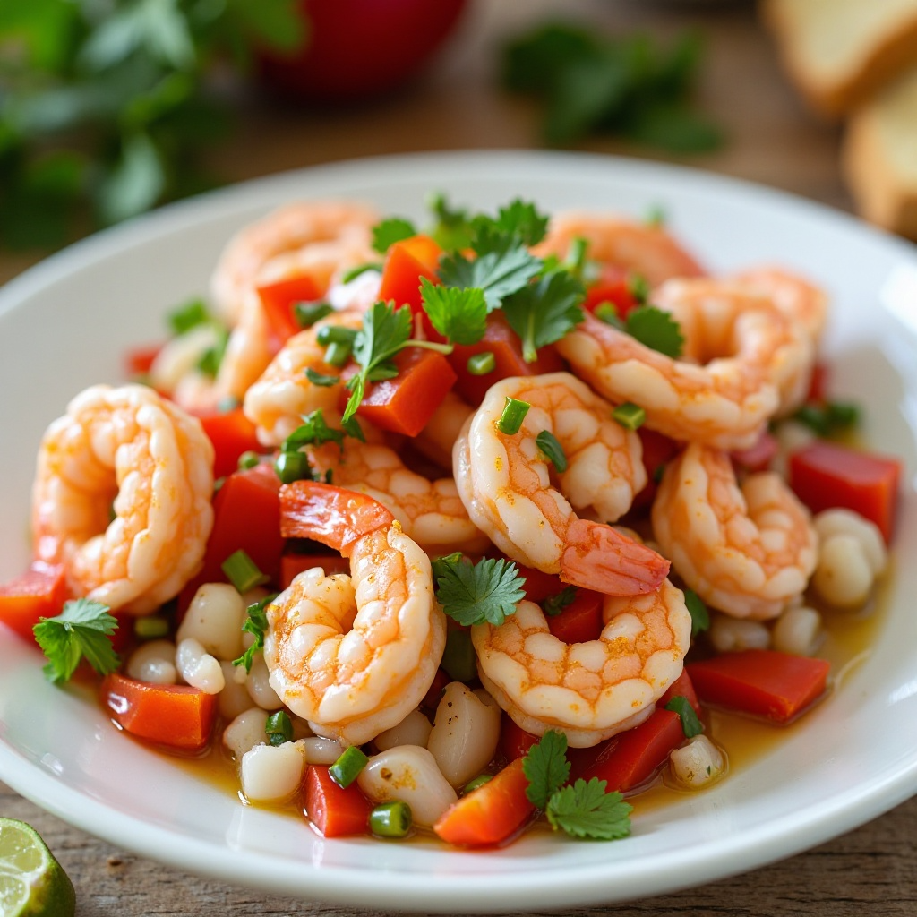 El camarón es una excelente fuente de proteínas y contiene omega-3, que son beneficiosos para la salud del corazón. El pimiento rojo y la cebolla aportan antioxidantes, mientras que el cilantro es conocido por sus propiedades antiinflamatorias. Para una versión saludable, puedes optar por un aceite de oliva de primera presión en frío y controlar las cantidades de sal y limón para ajustar el nivel de sal y acidez según tus preferencias dietéticas.