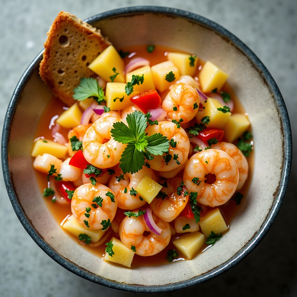 El ceviche de langostino es una adaptación deliciosa de la receta clásica, inspirada en los mariscos frescos del Noroeste del Pacífico. Esta versión incorpora sabores locales y proporciona una experiencia culinaria refrescante, perfecta para disfrutar en días soleados o simplemente como un festín para el paladar.