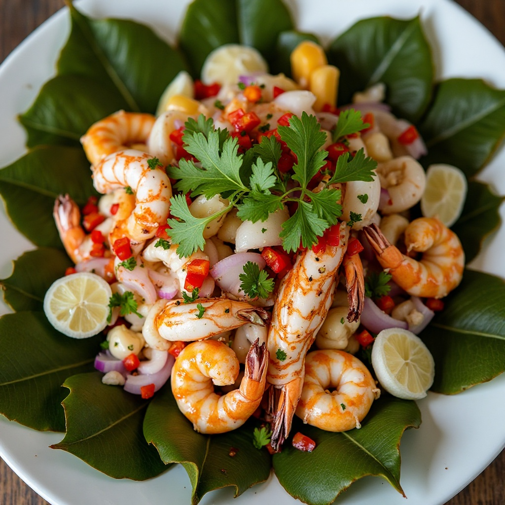 Receta de Ceviche de Mariscos con Hojas de Tabaco al Estilo Viñales, Cuba
