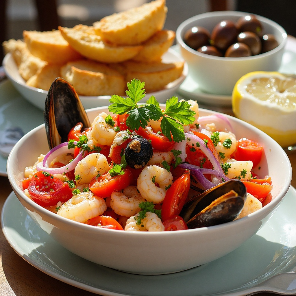 - Sirve el ceviche frío en platos individuales, y acompáñalo con pan de ajo y olivas para una experiencia auténtica de la costa mediterránea.