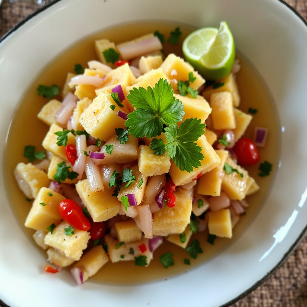 El ceviche, un clásico de la cocina costera sudamericana, ha sido adoptado y adaptado por diversas regiones a lo largo del continente. En Isla Barú, una isla colombiana conocida por su belleza y cultura caribeña, se ha creado una versión única que incorpora el pisco, un aguardiente peruano con notas agrias y frutales, añadiendo un toque distintivo a esta receta. Perfecto para compartir en reuniones familiares o como entrada en días festivos, este ceviche es una delicia fresca y vibrante.