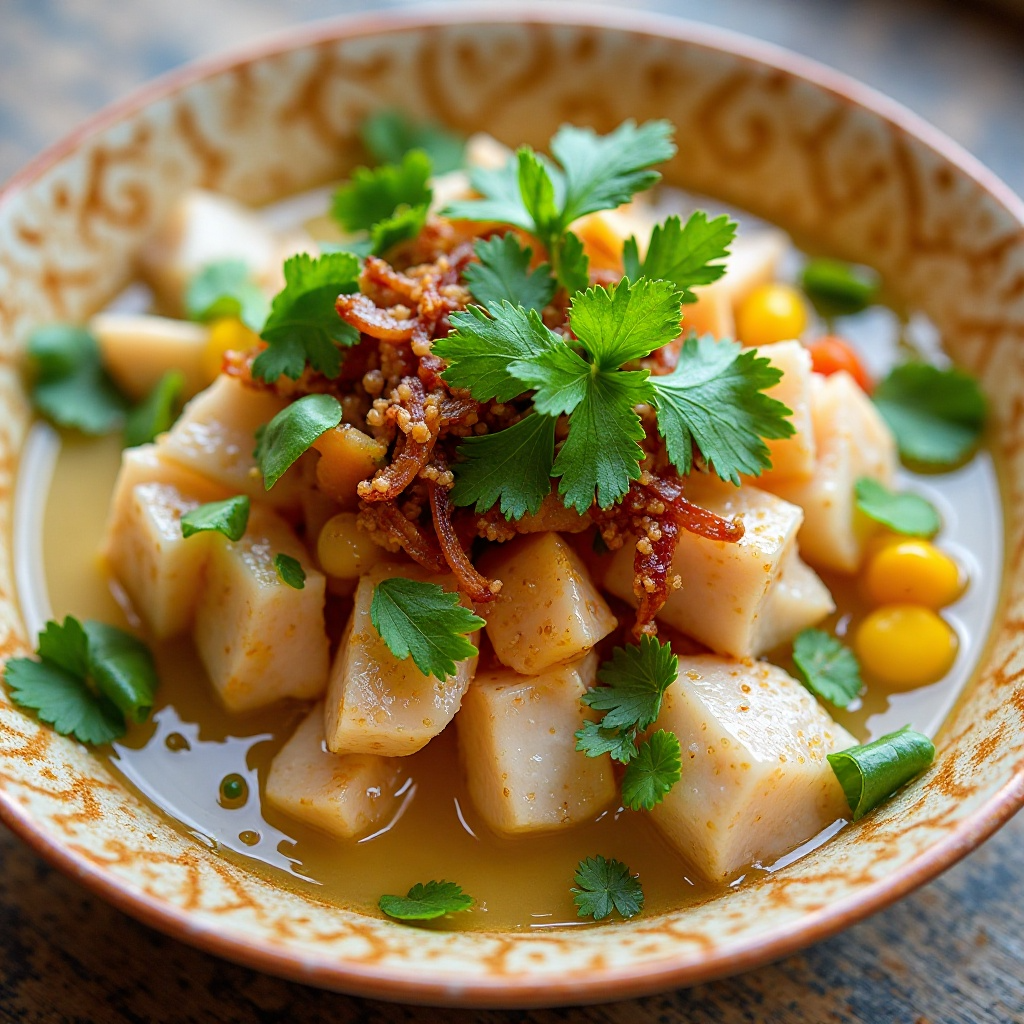 Las islas cargados carajos, conocidas por su biodiversidad y paisajes paradisíacos, reflejan una cultura rica en tradiciones locales. La cocina aquí es influenciada por la diversidad étnica, con sabores que se mezclan de diversas culturas costeras. Este plato innovador combina ingredientes frescos locales con técnicas de ceviche, representando un esfuerzo por fusionar lo tradicional con lo moderno en la gastronomía de las islas.