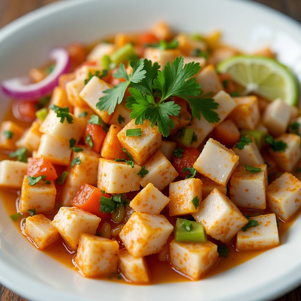 El ceviche yucateco es un plato fresco y lleno de sabor típico de la región costera de Yucatán. En Celestún, un pequeño pueblo conocido por su laguna y la abundancia de peces y mariscos, el ceviche adquiere una identidad propia con ingredientes locales que realzan su característico sabor achiote. Este plato es ideal para disfrutar en los cálidos días del Caribe mexicano.