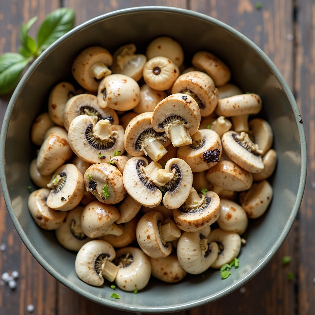 - Agrega los champiñones a la sartén, sazona con sal y pimienta, y cocina hasta que estén tiernos y ligeramente caramelizados (alrededor de 5-7 minutos).