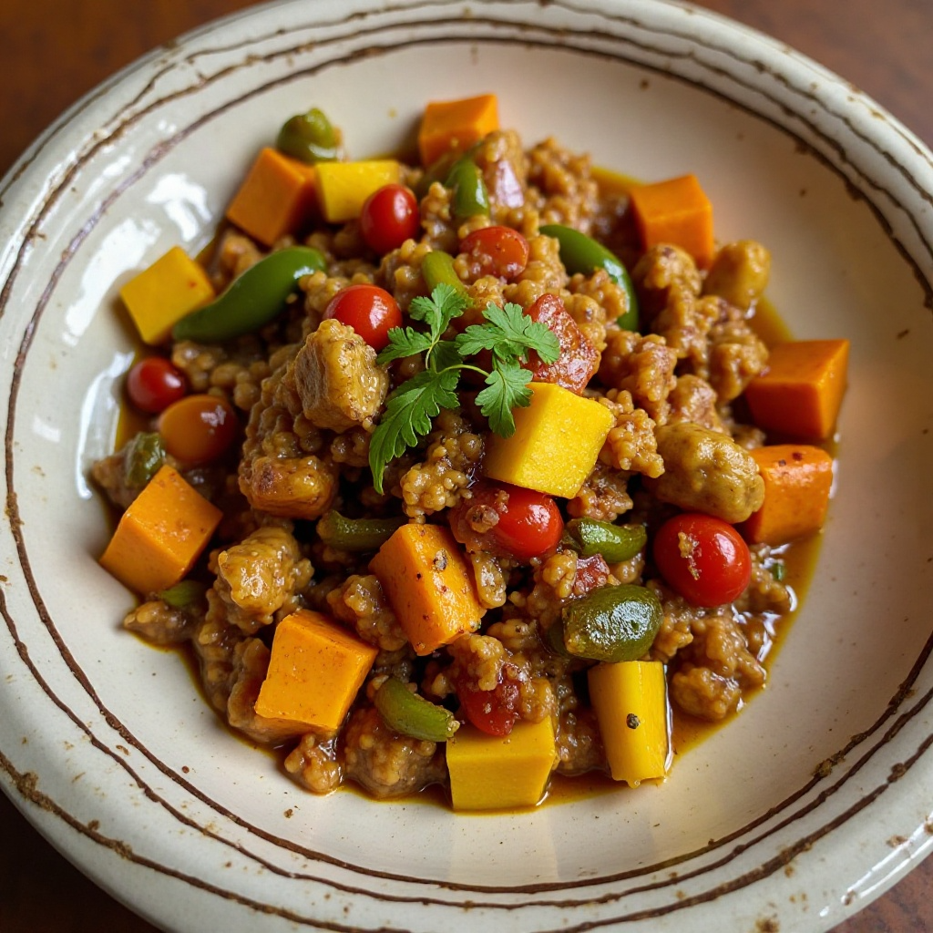 3. Introduce la carne de cerdo ahumada y cocínala a fuego medio hasta que esté bien cocida. Esto puede tomar alrededor de 30 minutos, moviendo ocasionalmente para asegurar una cocción uniforme.