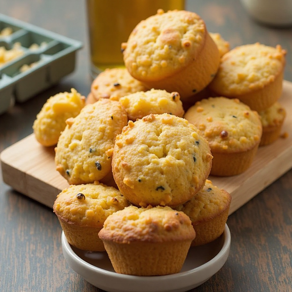 - Precalentar el horno a 375°F (190°C). En un tazón grande, mezcla los huevos, la cerveza y la mantequilla derretida hasta que estén bien combinados.
