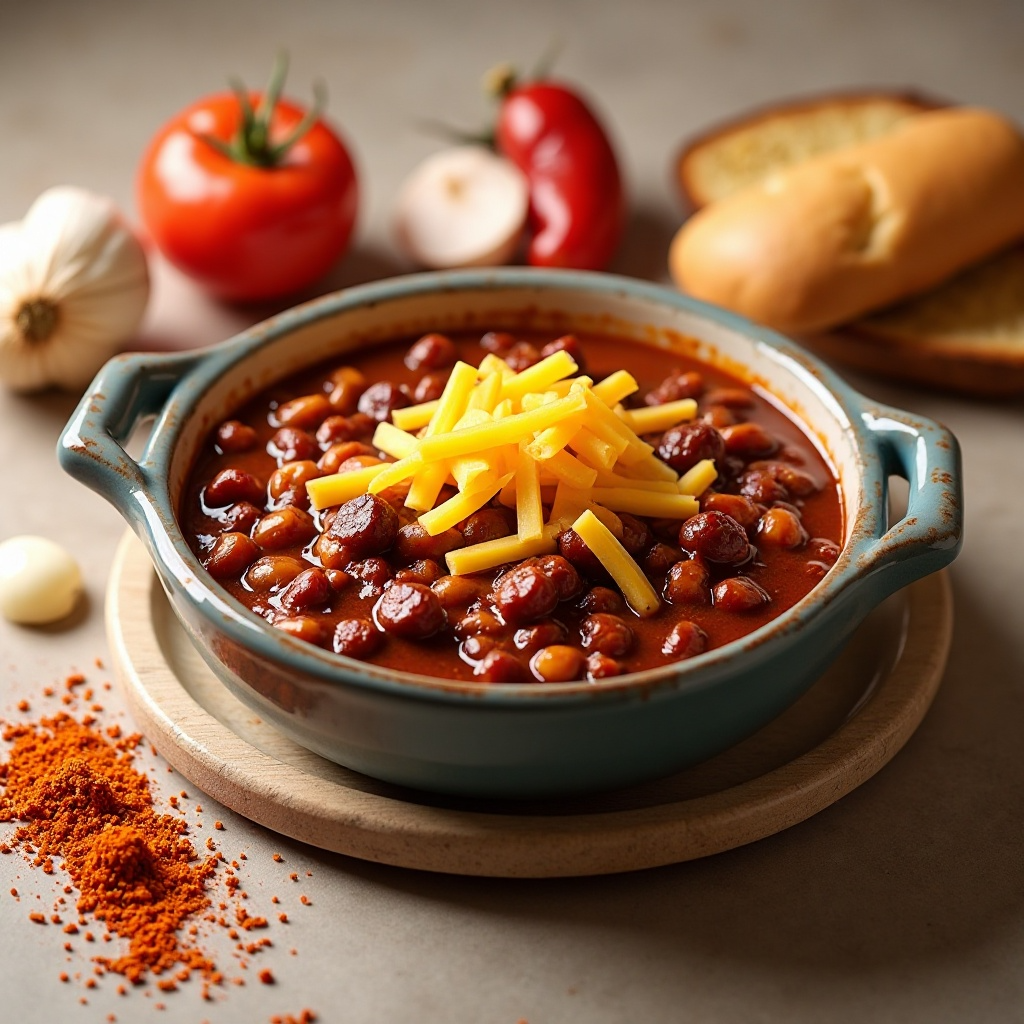 - Para servir, vierte el chili en platos profundos. Si lo deseas, puedes añadir queso cheddar rallado por encima para un toque extra de sabor.
