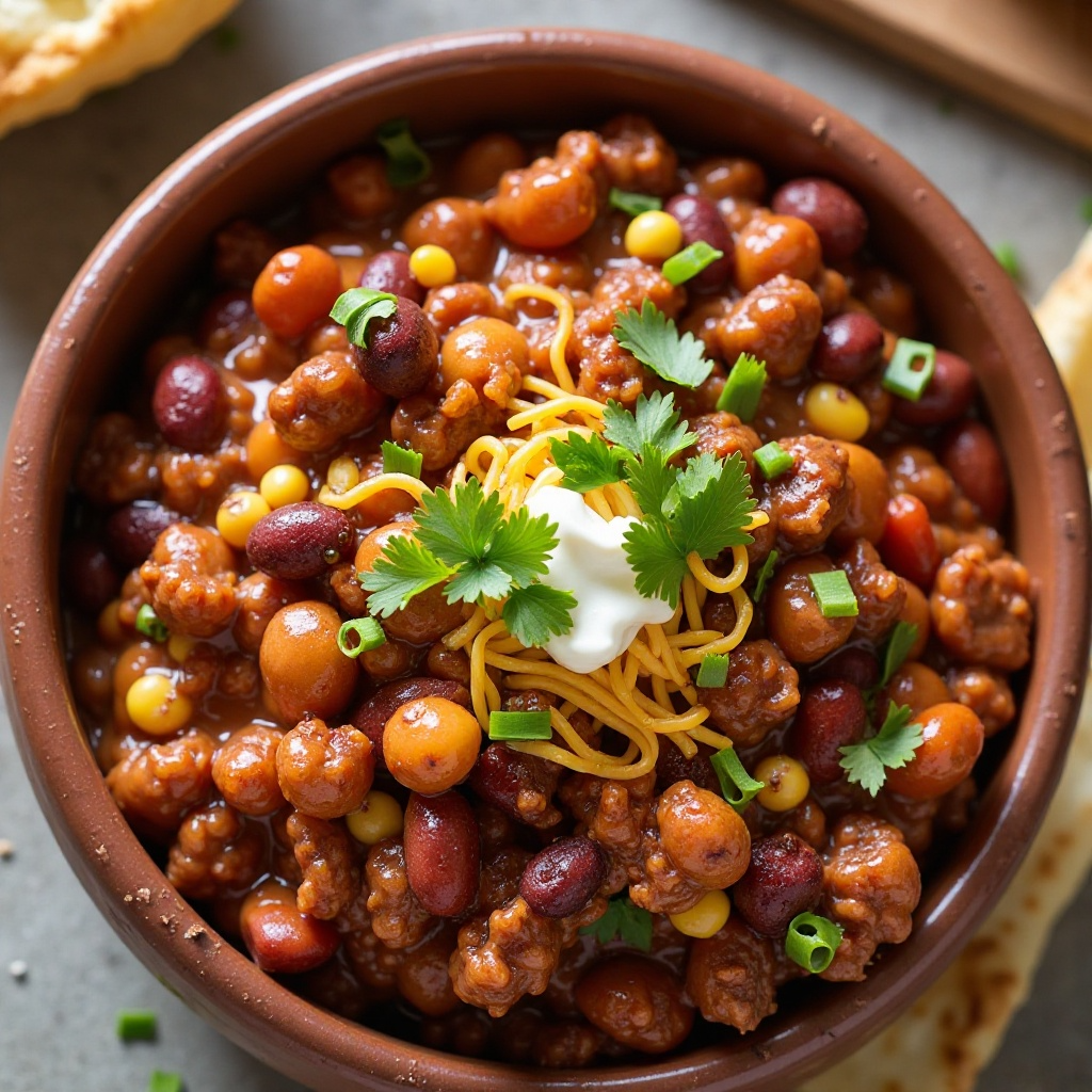 El chili con carne es una fuente rica en proteínas y hierro debido a la carne molida. Los frijoles añaden fibra y potasio, mientras que el maíz dulce proporciona vitaminas del complejo B. Este plato puede ser ajustado para adaptarse a restricciones alimenticias, como usar carne magra o vegetales en su lugar para una versión vegetariana.