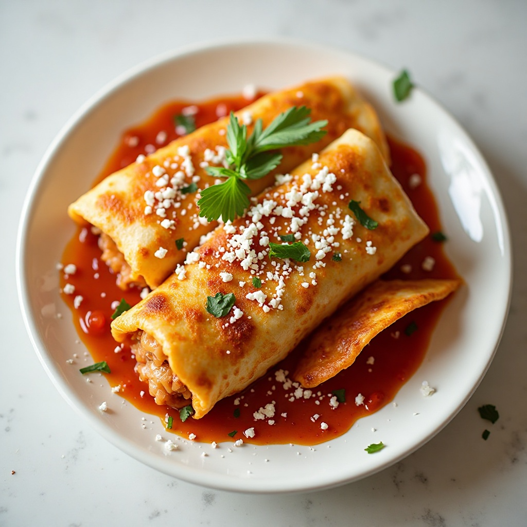 - Coloca las chimichangas en platos y espolvorea con queso cotija rallado.