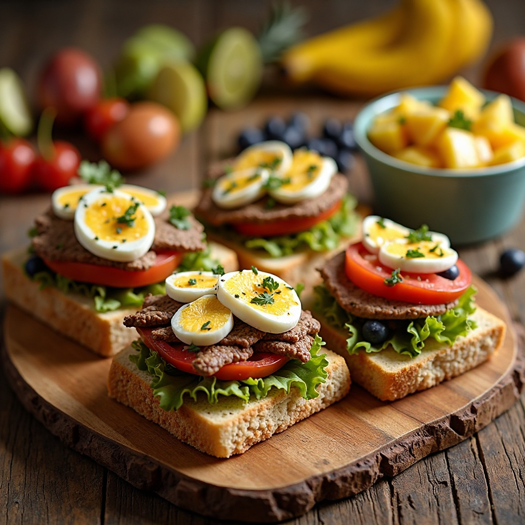 El chivito es un plato emblemático de Uruguay, conocido por su combinación única de carne, queso, tomate, lechuga y salsa criolla. En Montevideo, se disfruta con variaciones locales, como incluir huevo frito o usar diferentes tipos de carne. Para equilibrar esta riqueza de sabores con una opción más ligera, te presento una versión del chivito acompañada de una ensalada de frutas tropicales que ofrece un contraste refrescante y nutricional.