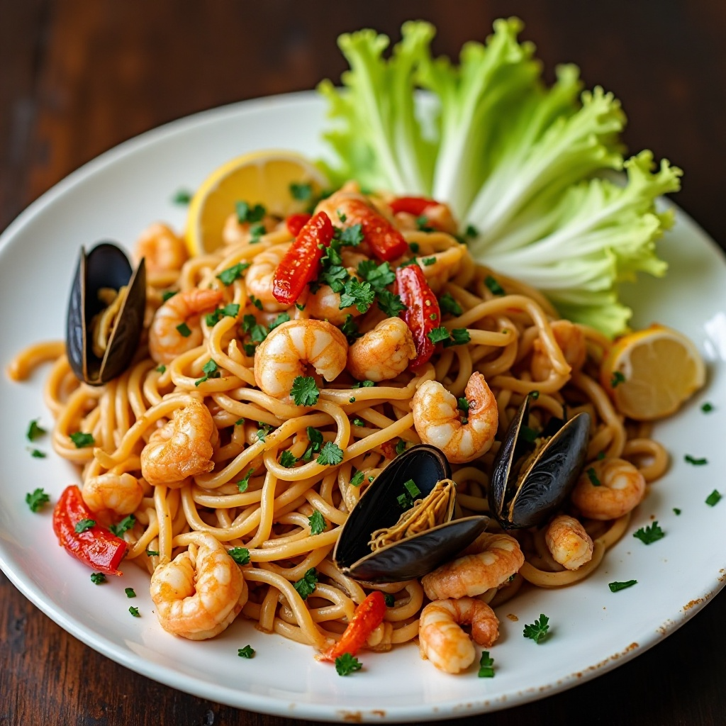 El Chow Mein con mariscos es una opción saludable gracias a los mariscos, que son ricos en proteínas magras, omega-3 y vitaminas del complejo B. Incorporar verduras frescas y fideos de arroz puede aumentar aún más la cantidad de fibra y nutrientes. La salsa de soja y el sambal oelek aportan un buen equilibrio de sabores, pero se recomienda moderación para quienes estén monitoreando su ingesta de sodio y calorías.