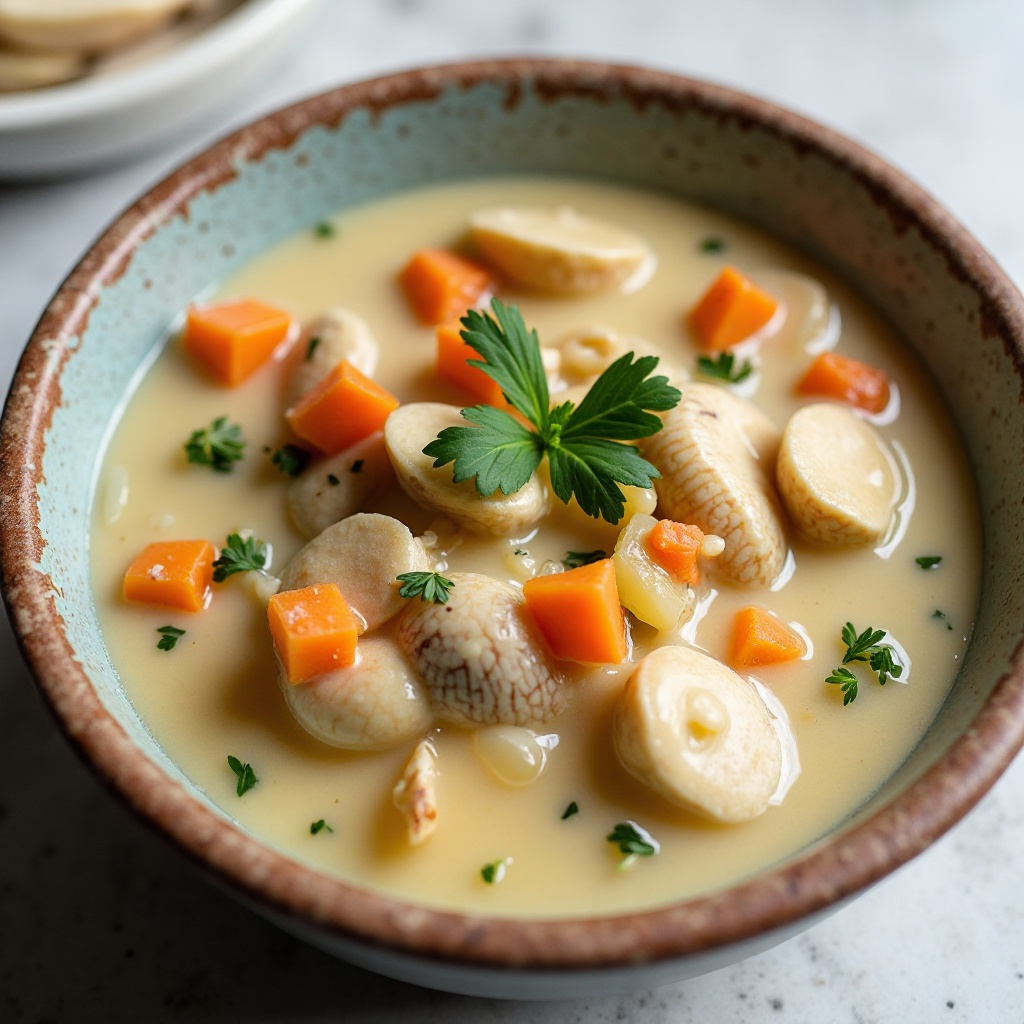 El chowder de clam es una fuente rica en proteínas y contiene nutrientes esenciales como vitamina C y hierro. Los mariscos, como el clam, son bajos en grasas saturadas y ricos en ácidos grasos omega-3, beneficiosos para la salud cardiovascular. Asegúrate de usar un caldo de pescado bajo en sal si tienes preocupaciones dietéticas.