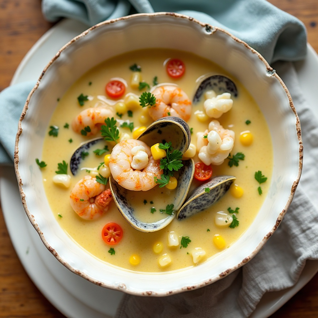 El chowder de mariscos es rico en nutrientes esenciales como proteínas, vitaminas del complejo B, y ácidos grasos omega-3 provenientes del pescado y mariscos. Es importante asegurarse de que los mariscos utilizados estén frescos para evitar cualquier riesgo de contaminación. Para una versión más ligera, se pueden sustituir algunos mariscos por vegetales similares, como espárragos o coliflor.