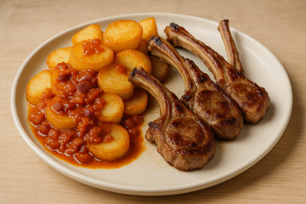 Receta de Chuletillas de Cordero Lechal con Patatas Bravas en Ávila, España