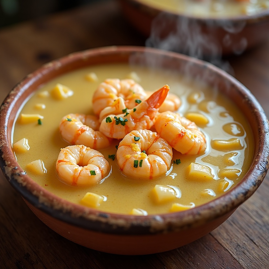 El Chupe de Camarones es un plato tradicional de la cocina peruana, especialmente apreciado en Arequipa, conocida por su riqueza culinaria. Este guiso es una versión cremosa de camarones, servido con una variedad de ingredientes que incluyen papas, queso fresco y leche evaporada, creando una experiencia gastronómica reconfortante.