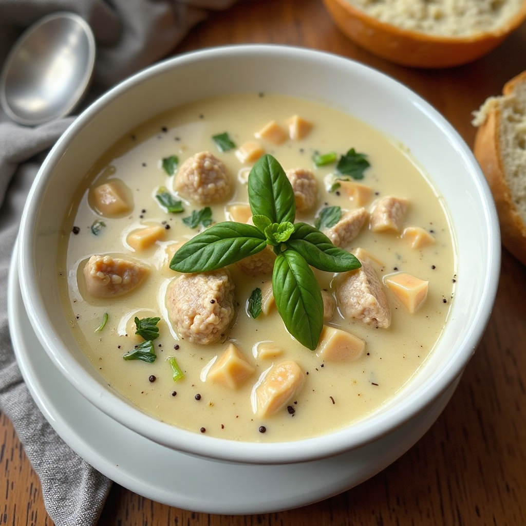 7. Sirve caliente en tazones individuales. Puedes decorar con una hoja de albahaca fresca para presentar.
