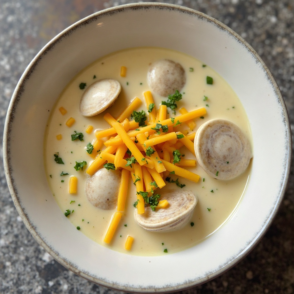 Bath es conocida por su rica tradición culinaria, donde los platos locales incorporan ingredientes frescos de la región. Esta versión del clam chowder captura ese espíritu, fusionando las influencias costeras de Estados Unidos con los sabores tradicionales británicos, especialmente el cheddar, que le da un toque distintivo y delicioso a este caldo reconfortante.
