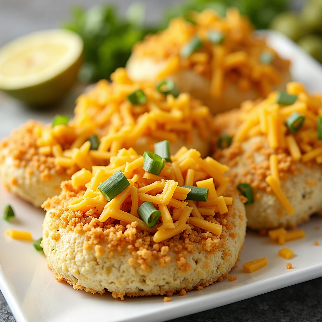 - En un tazón grande, mezcla el pan rallado, el queso cheddar rallado, y la cebolla verde picada. Añade sal y pimienta al gusto.