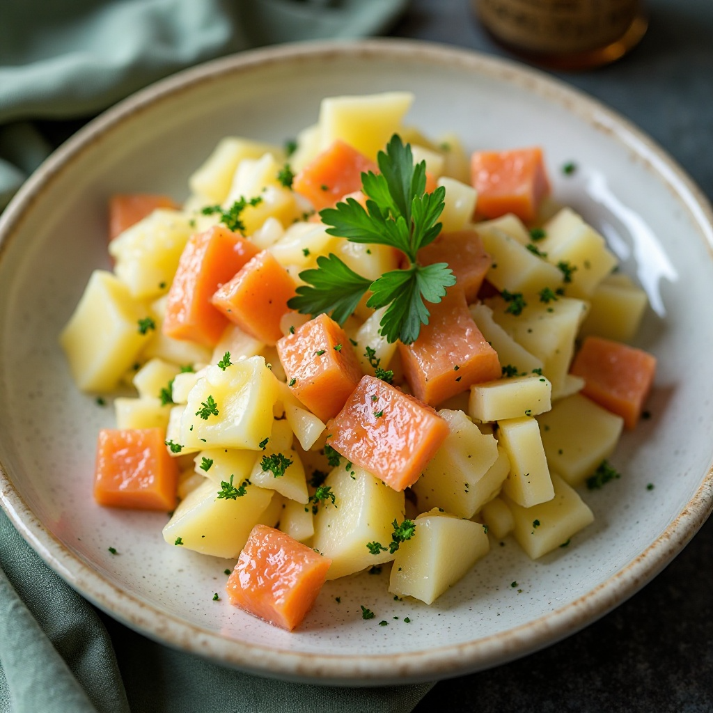 Este plato no solo es delicioso sino también muy nutritivo. Las patatas y el repollo son ricos en vitaminas y fibra, mientras que el salmon ahumado es una fuente rica de proteínas y omega-3. La nata aporta cremosidad sin añadir exceso de calorías. Si buscas una versión más ligera, podrías usar crema de verduras en lugar de nata.