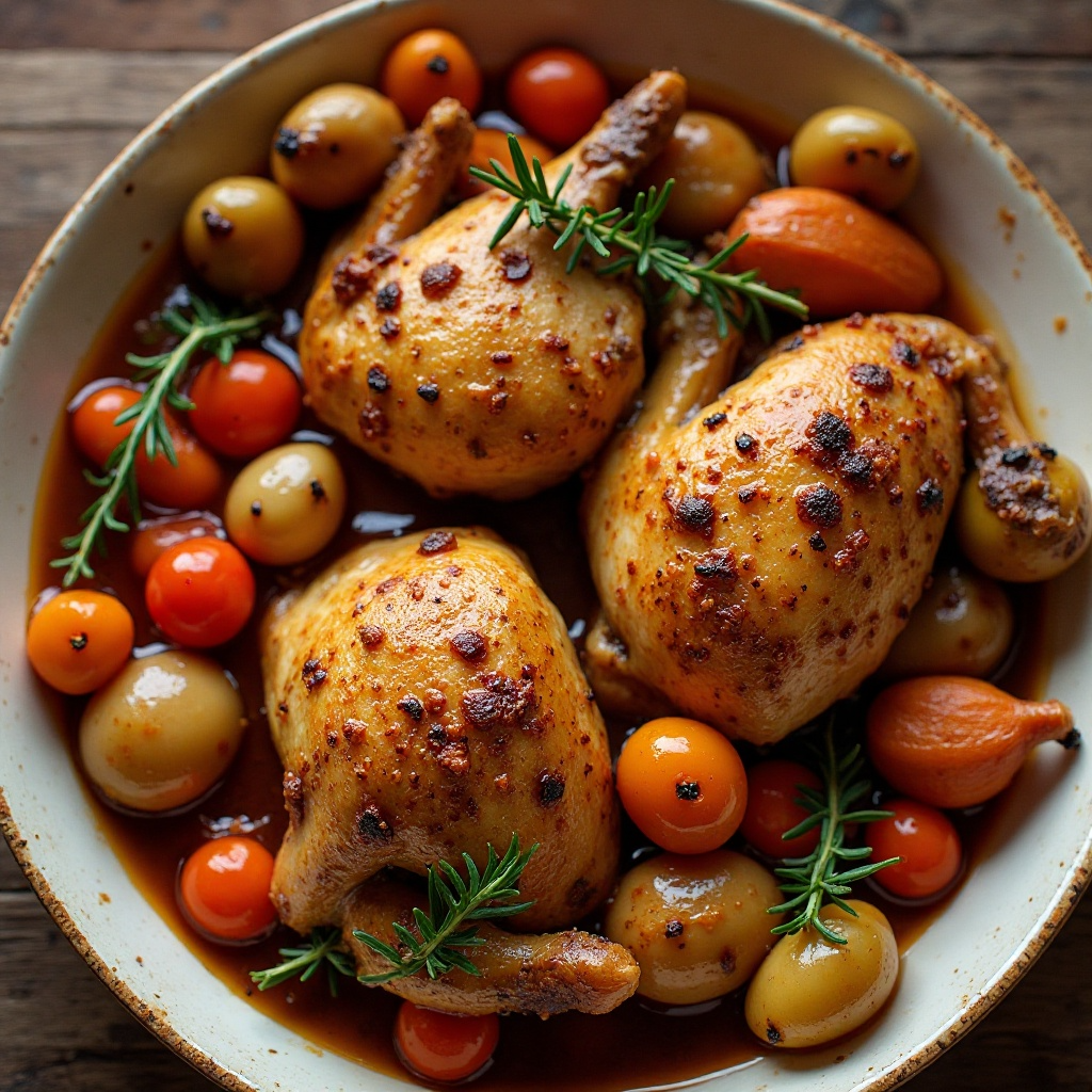 El Coq au Vin Borgoña-Style es una interpretación moderna del clásico francés que resalta el prestigioso vino tinto de la región. Borgoña es conocida por sus vinos tintos de alta calidad, especialmente los producidos con las variedades Pinot Noir y Chardonnay. En la cocina Borgoñona, se prefiere un equilibrio entre los sabores suaves y complejos del vino y los ingredientes locales, lo que refleja el rico patrimonio gastronómico de la región. Este plato es una excelente manera de disfrutar no solo de la comida sino también del arte del vino.