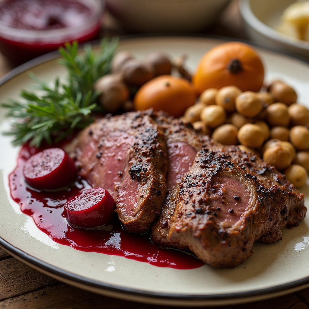 Receta de Cordero asado con Salsa de Remolacha y Champiñones al estilo de Thompson, Canadá