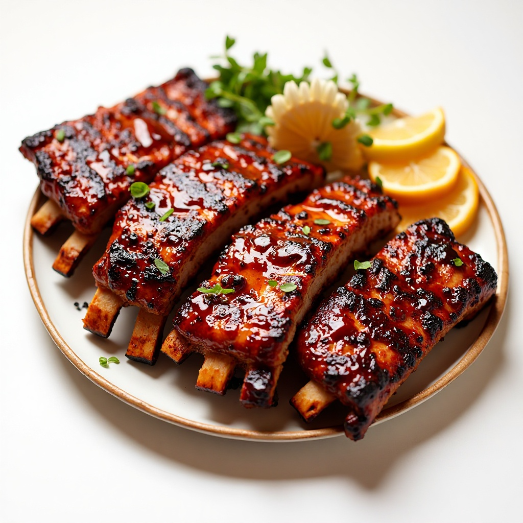 5. Una vez que las costillas estén cocidas (aproximadamente 1 hora dependiendo del horno o parrilla), retíralas de la parrilla. Déjalas reposar por unos minutos antes de servir para que la carne se ablande y la salsa se asiente.