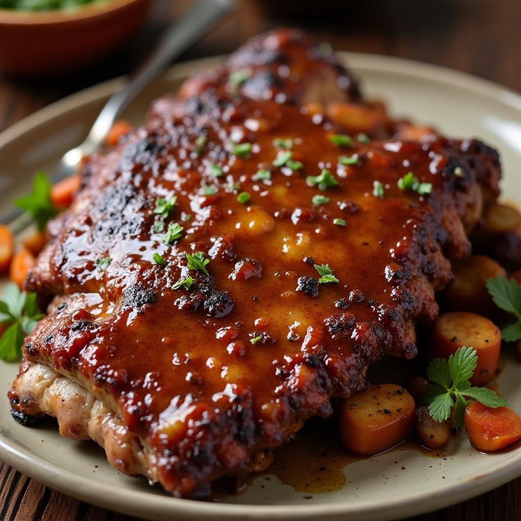La carne de cerdo es una fuente de proteínas magra y puede ser baja en grasas saturadas. Este plato ofrece una rica experiencia gastronómica con un enfoque en ingredientes naturales y especias que realzan el sabor del cerdo sin sobrecargar la comida con grasa. Para una versión más saludable, considera reducir la cantidad de miel o jarabe de arce y aumentar el uso de vegetales.