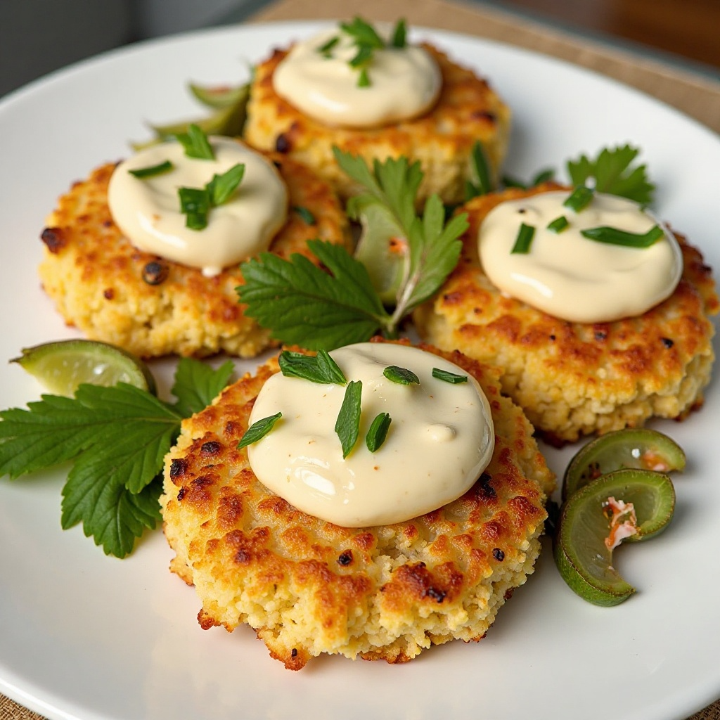 Los Crab Cakes son un manjar de proteínas magras y omega-3, esenciales para la salud cardiovascular. La mayonesa casera utilizada en la salsa remoulade es una alternativa más saludable a las mayonesas comerciales, reduciendo el consumo de grasas saturadas. Si prefieres una opción baja en carbohidratos, opta por usar harina de garbanzo en lugar de harina de trigo.