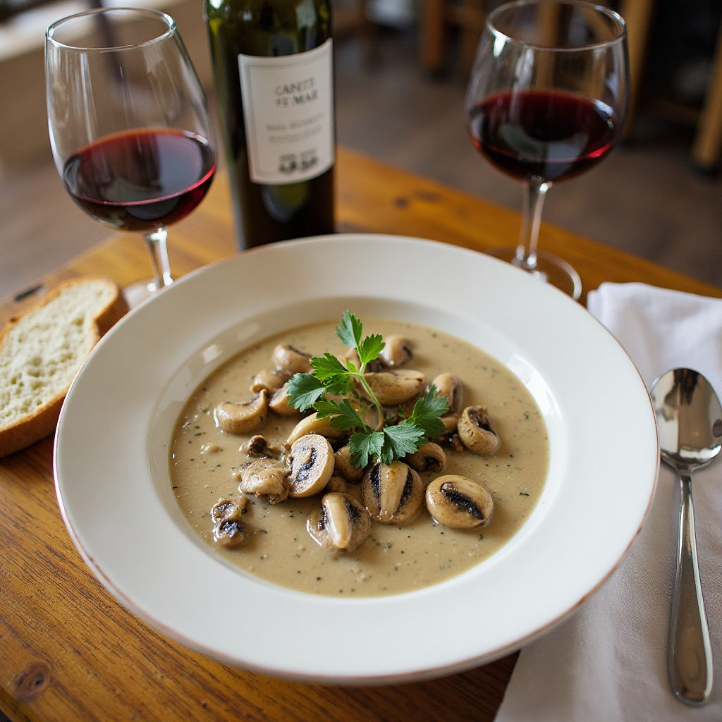 La región vitivinícola de Canet de Mar en España, conocida por sus vinos tintos robustos y frescos, es el punto de partida para este plato refinado. La combinación de champiñones con los vinos locales crea un sabor complejo y umami que realza la receta de crema clásica. Ideal para una cena elegante o para impresionar a tus invitados.