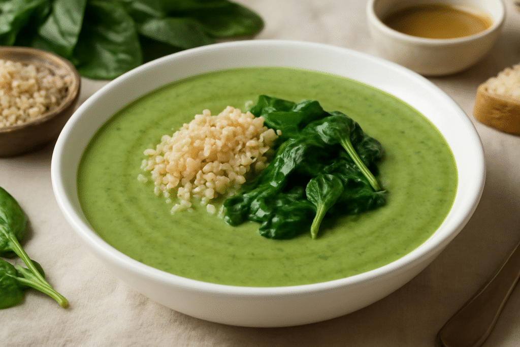 Receta de Crema de Porra Antequerana con Espinacas y Quinoa