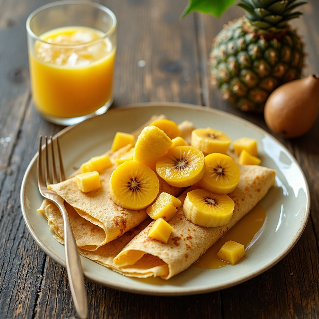 Receta de Crepes de Plátano Maduro con Jugo de Frutas Tropicales