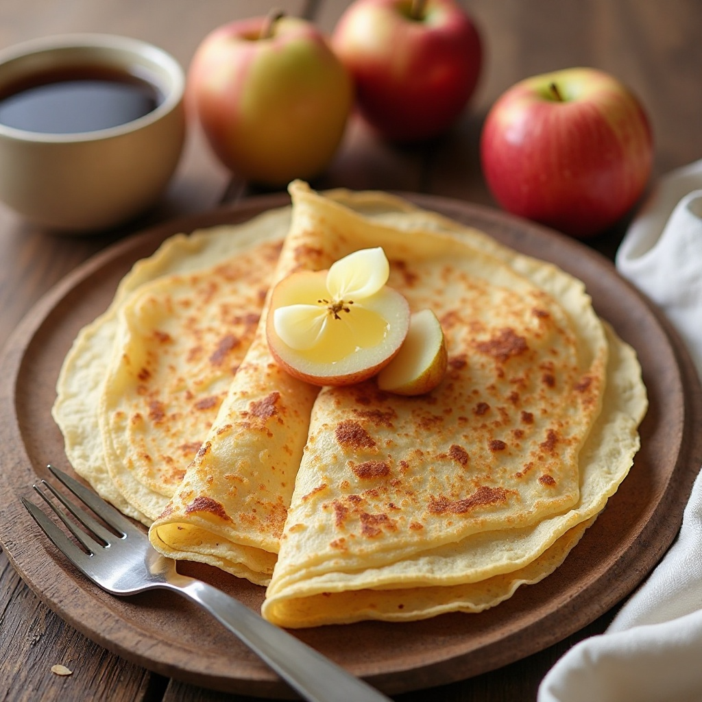 Esta receta de crêpes con sidra es baja en grasas y rica en nutrientes gracias a la harina y la leche. La sidra de manzana, al ser natural, es una opción saludable para endulzar. Para adaptar esta receta a diferentes necesidades dietéticas, puedes usar leche de almendra o avena en lugar de leche entera, y elegir un sirope de maple sin azúcar añadido.