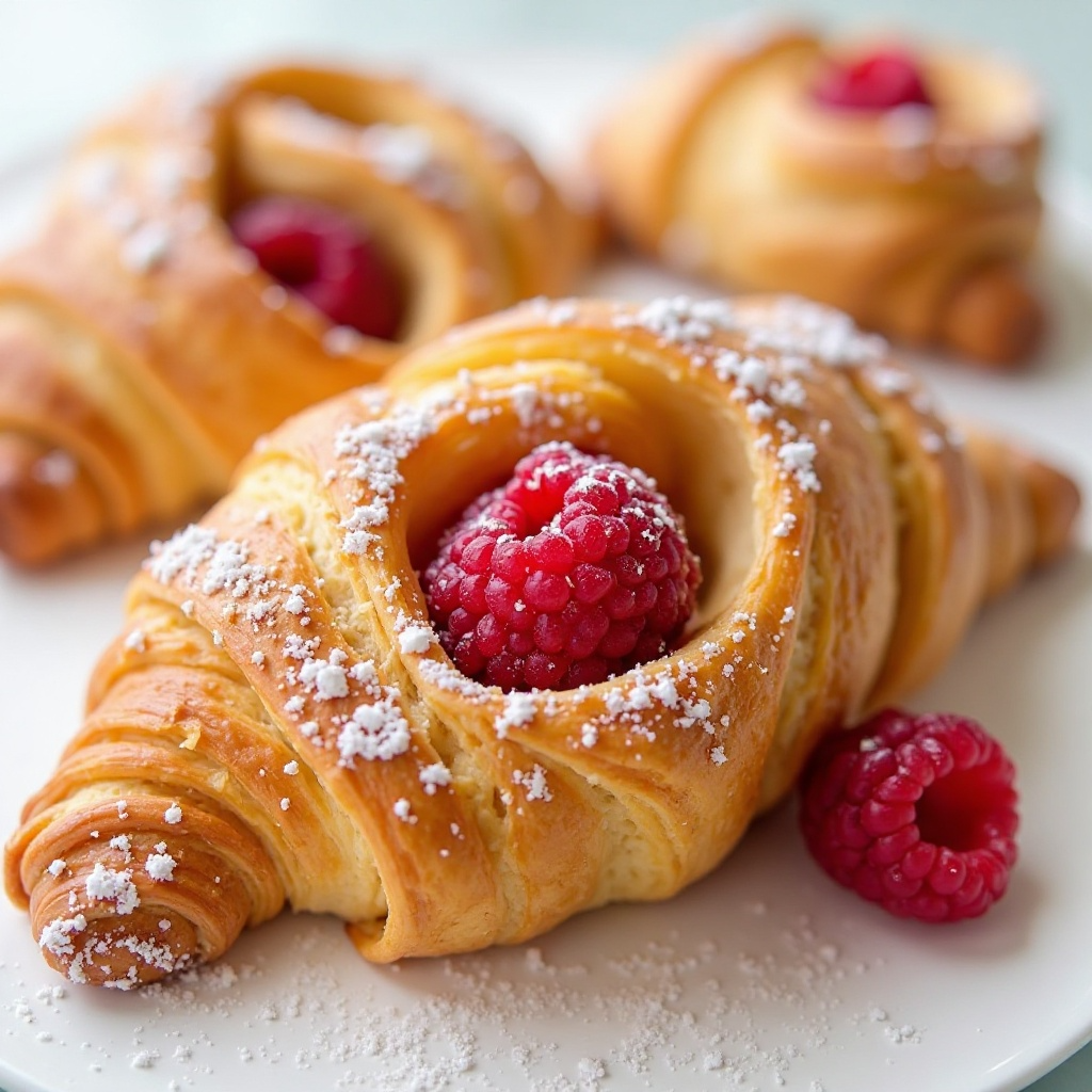 Los croissants son un clásico francés emblemático, y en esta receta, les daremos un toque sofisticado con frambuesas frescas. Esta combinación crea una delicia dulce ideal para el té o un postre después de una comida ligera. Los croissants se hornean hasta alcanzar una textura crujiente por fuera y tierna por dentro, mientras que las frambuesas aportan un contraste jugoso y ácido.