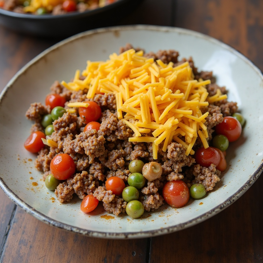 Este plato es una buena fuente de proteínas a través de la carne molida. Los vegetales agregados ofrecen fibra y un toque saludable. Si prefieres una versión baja en grasa, puedes reducir el queso cheddar y la mantequilla, o buscar alternativas light. Asegúrate de lavar bien todas las verduras y de cocinar la carne hasta que esté bien cocida para evitar cualquier riesgo de enfermedad transmitida por alimentos.