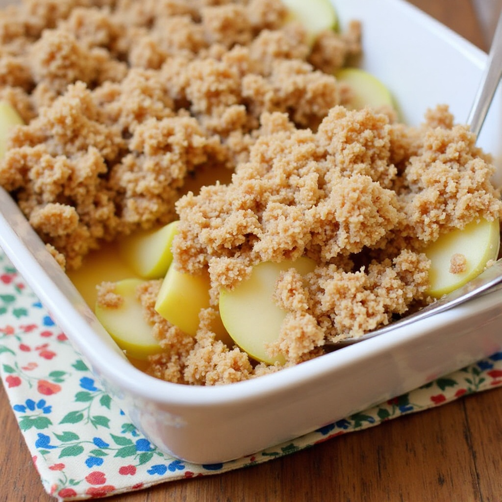 Este Crumble de Manzana es una opción equilibrada, rica en vitaminas C y fibra gracias a las manzanas. La gelatina de cangrejo, si se encuentra disponible y se usa en moderación, añade un toque inusual pero no aporta elementos significativos en términos de nutrientes o beneficios para la salud. Si se busca una versión sin gluten, asegúrate de que todos los ingredientes sean aptos para esa dieta.