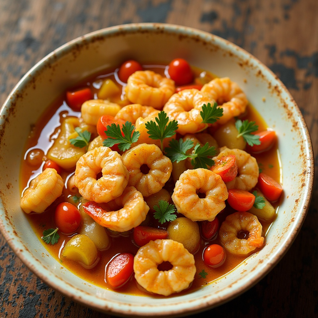 La cocina Comoriana está fuertemente influenciada por la cultura árabe y africana, lo que se refleja en platos como el curry. Los camarones son un ingrediente común debido a la proximidad de las islas a los océanos Índico y Arábigo. Este plato no solo es una muestra del rico tapiz de sabores que abarcan Comoras, sino también un símbolo de su rica historia gastronómica.