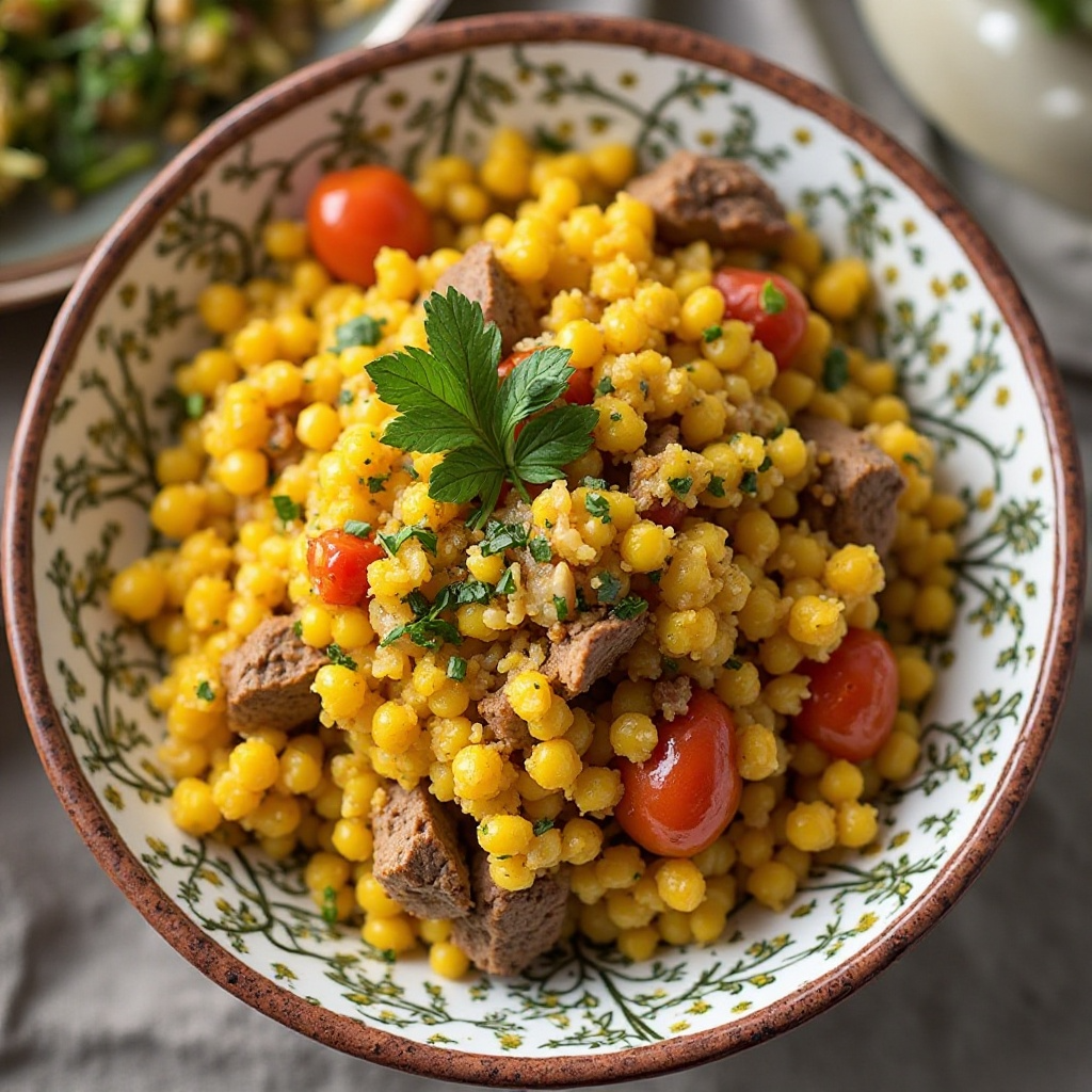 El cuscús es un plato típico de África Occidental que se ha convertido en un elemento básico en muchas cocinas. En Tarrafal, una isla pintoresca de Cabo Verde, se le da un toque distintivo con la adición de grogue, un aguardiente local hecho de caña de azúcar. Este plato es perfecto para una cena acogedora o un almuerzo familiar.