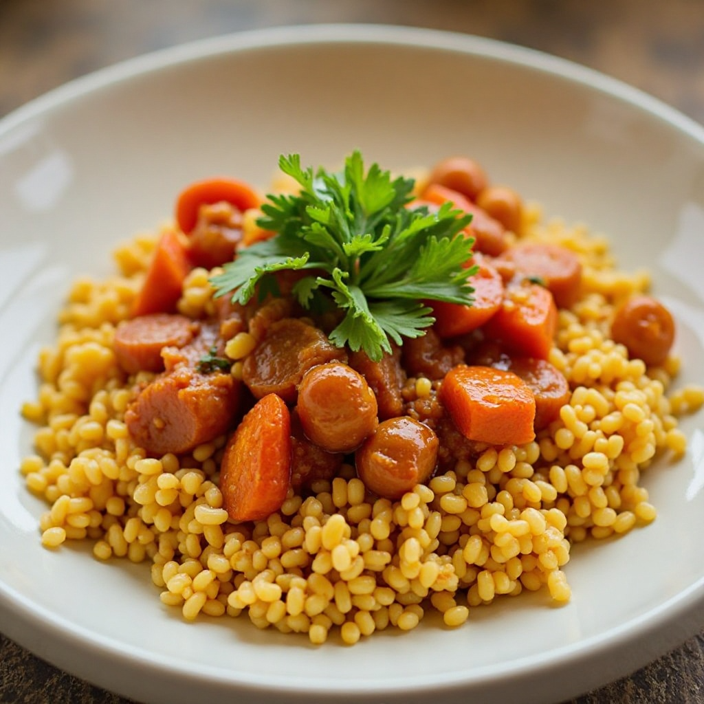 El cuscús con Harira es un plato que refleja la sencillez y riqueza de la cocina argelina. Annaba, siendo una ciudad portuaria, ha integrado sabores mediterráneos en su gastronomía, pero mantiene un fuerte arraigo a las tradiciones bereberes. Este plato no solo alimenta el cuerpo sino que también nutre el alma con su profundo sabor cultural y familiar.