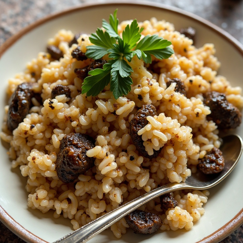 Este plato es rico en fibra debido a los granos de arroz y contiene una variedad de vitaminas presentes en la cebolla y el ajo. El uso de jugo de porcin de habichuela (Djon Djon) puede contribuir a un perfil nutricional interesante, aunque su disponibilidad depende de la región. Para adaptar este plato a diferentes necesidades dietéticas, se pueden explorar alternativas para el jugo de porcin de habichuela en función de las alergias o preferencias alimentarias.