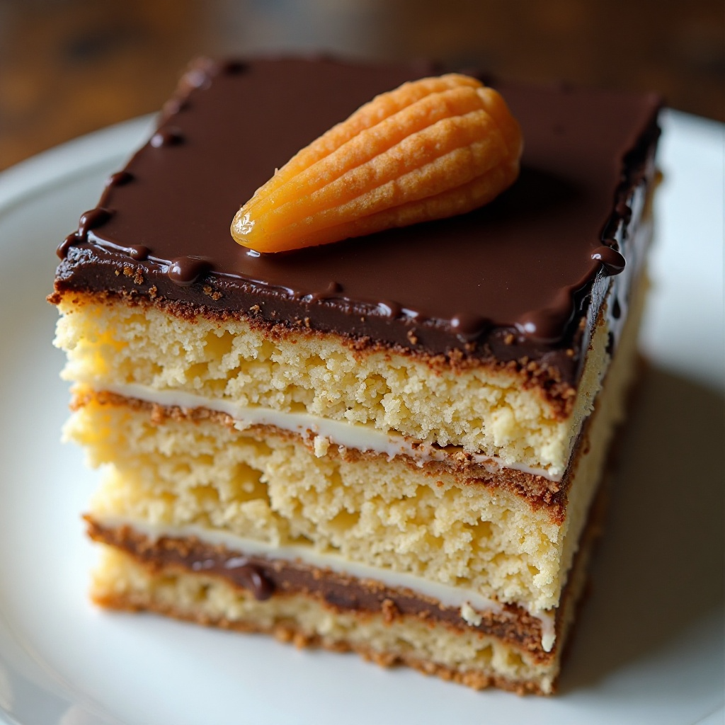 - Decoración final: si dispones de miel de Budapest, puedes añadir una gota en el centro del glaseado para un toque auténtico. Sirve y disfruta de tu Dobos Torte Budapester.