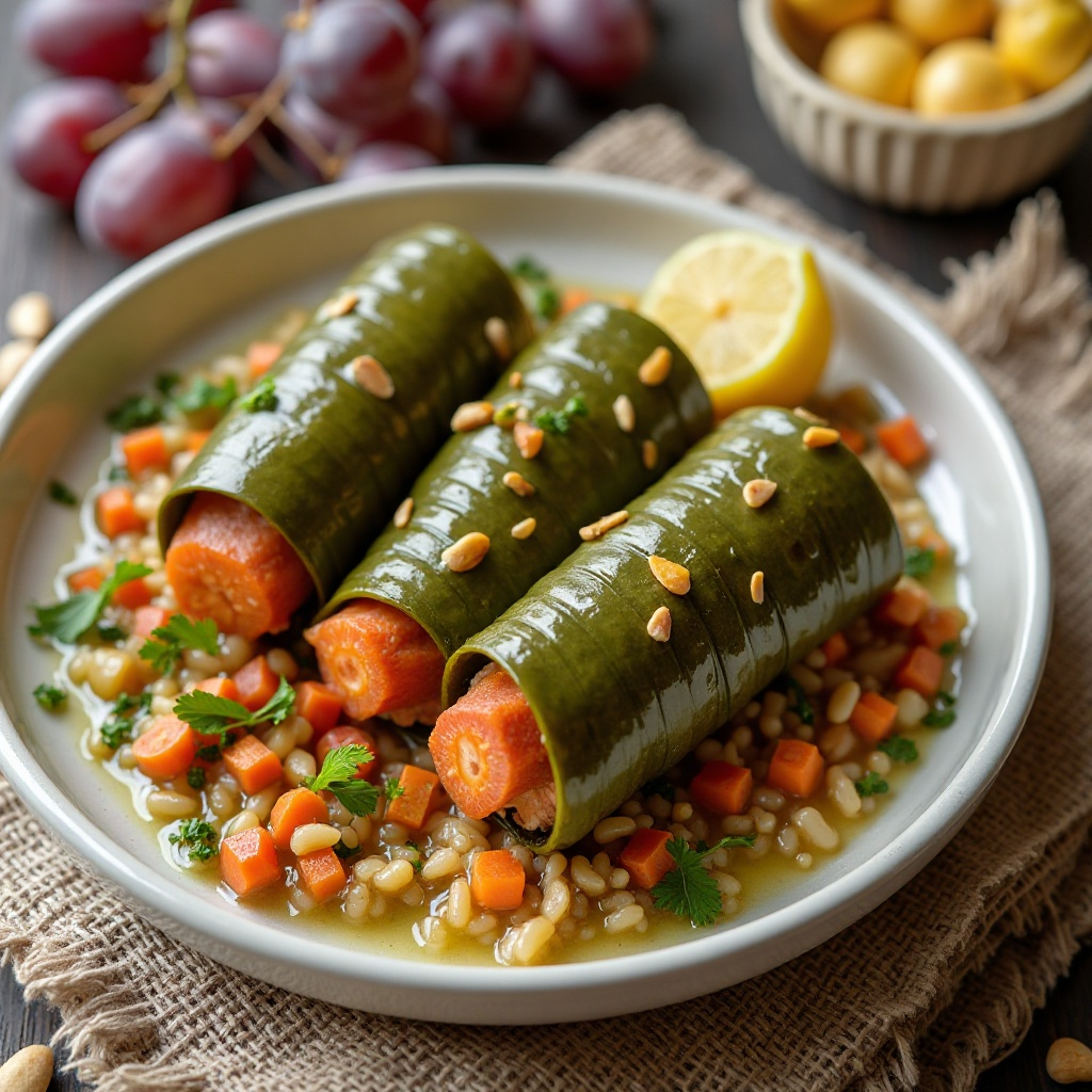 Los dolmas son un plato tradicional de Oriente Medio y el Mediterráneo, caracterizado por hojas de vela rellenas con una mezcla de especias y verduras. En la región de Sulaymaniya, en Irak, se preparan con un toque único que destaca por su riqueza en sabor y variedad de ingredientes locales. Este plato es ideal para reuniones familiares o como plato principal en cenas relajadas.