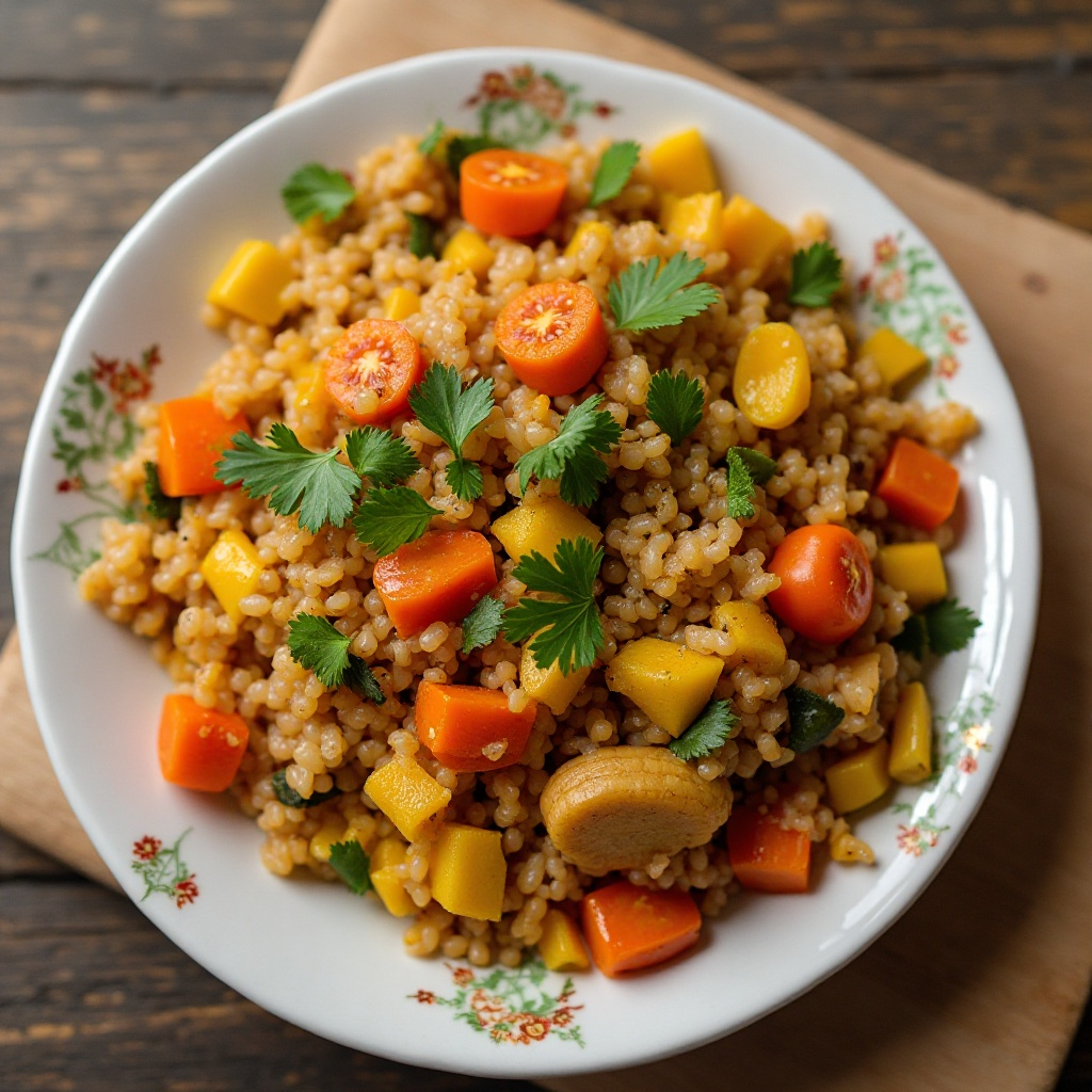 Ebebiyín es una tradicional receta de arroz con verduras que se disfruta ampliamente en Guinea Ecuatorial, especialmente en las regiones costeras. Este plato es un excelente ejemplo de la rica diversidad culinaria del país, donde los sabores africanos se fusionan con influencias coloniales. La receta se caracteriza por su aroma a especias y el contraste entre el arroz y los vegetales frescos.